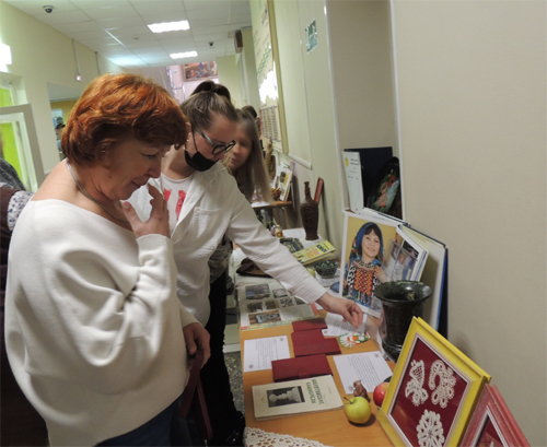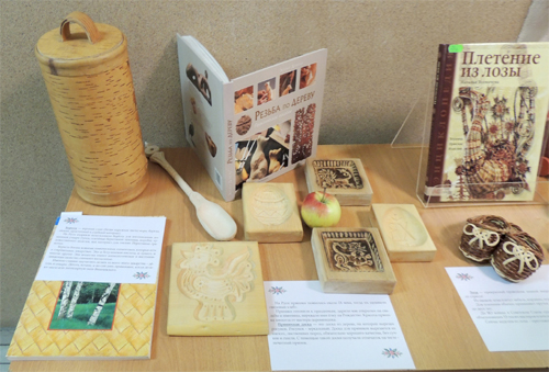 Дымковская игрушка, вологодское кружево, городецкая роспись, хохлома, тагильские и жостовские подносы, Урало-Сибирская роспись, тобольская резная кость, кубачинская чеканка, лапти и прялки, обережные куклы-вертушки, павлопосадские платки, ювелирные изделия – эти и многие другие образцы изделий декоративно-прикладного искусства можно было и потрогать, и даже примерить на выставке. И работники вуза, и студенты с удивлением узнали, что многие промыслы существуют и сегодня, и не только существуют, но и процветают. Все экспонаты для выставки были предоставлены из личных коллекций доцента кафедры физико-химической защиты биосферы Подковыркиной О. М., доцента кафедры МОДиПБ Шейкмана Д. В., работников библиотеки.