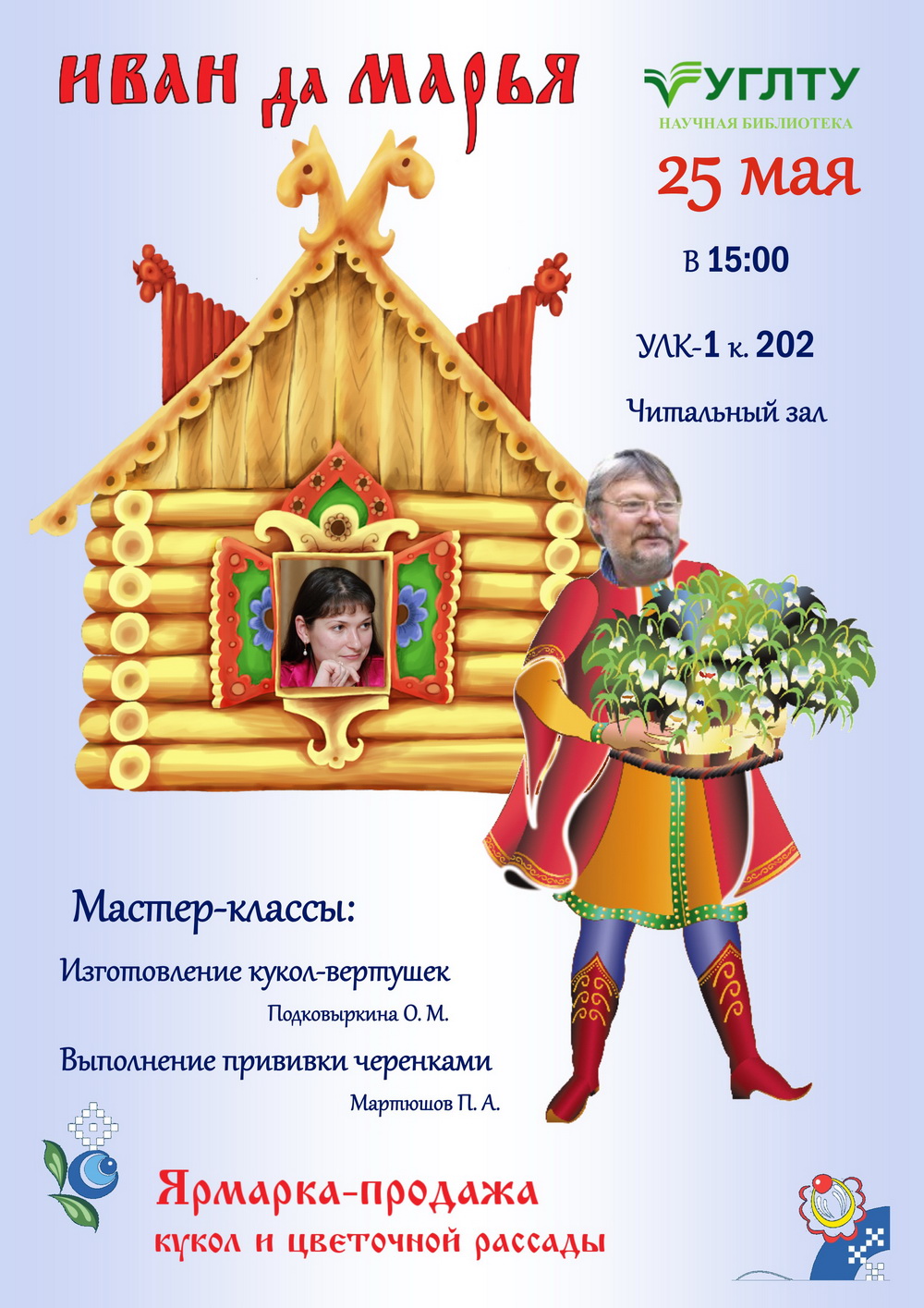IDAВ читальном зале (УЛК-1) вас встретят народные умельцы Мартюшов Павел (директор Сада им. Вигорова) в роли Ивана и Подковыркина Оксана (доцент кафедры ФХТЗБ ) в роли Марьи.